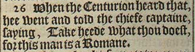 26 When the Centurion heard that, hee went and told the chiefe captaine, saying, Take heede what thou doest, for this man is a Romane.