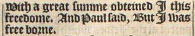 28 And the chiefe captaine answered, With a great summe obteined I this freedome. And Paul said, But I was free borne.