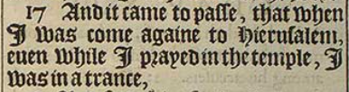 17 And it came to passe, that when I was come againe to Hierusalem, euen while I prayed in the temple, I was in a trance,