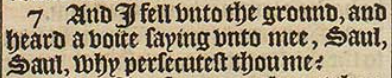 7 And I fell vnto the ground, and heard a voice saying vnto mee, Saul, Saul, why persecutest thou me?