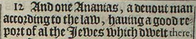 12 And one Ananias, a deuout man according to the law, hauing a good report of al the Iewes which dwelt there,