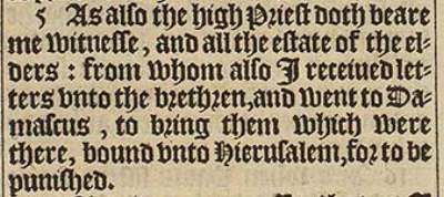 5 As also the high Priest doth beare me witnesse, and all the estate of the elders: from whom also I receiued letters vnto the brethren, and went to Damascus, to bring them which were there, bound vnto Hierusalem, for to be punished.