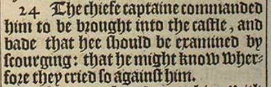 24 The chiefe captaine commanded him to be brought into the castle, and bade that hee should be examined by scourging: that he might know wherfore they cried so against him.