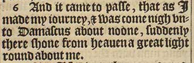 6 And it came to passe, that as I made my iourney, & was come nigh vnto Damascus about noone, suddenly there shone from heauen a great light round about me.
