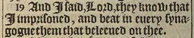 19 And I said, Lord, they know that I imprisoned, and beat in euery synagogue them that beleeued on thee.