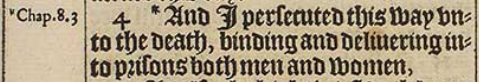4 *And I persecuted this way vnto the death, binding and deliuering into prisons both men and women,[*Chap.8. 3]