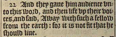 22 And they gaue him audience vnto this word, and then lift vp their voices, and said, Away with such a fellow from the earth: for it is not fit that he should liue.