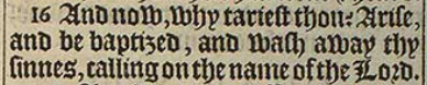 16 And now, why tariest thou? Arise, and be baptized, and wash away thy sinnes, calling on the name of the Lord.