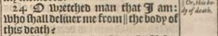 24 O wretched man that I am: who shall deliuer me from || the body of this death?[||Or, this body of death.]