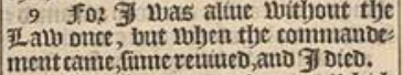9 For I was aliue without the Law once, but when the commandement came, sinne reuiued, and I died.