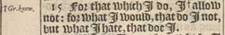 15 For that which I do, I +allow not: for what I would, that do I not, but what I hate, that doe I.[+Gr. know.]