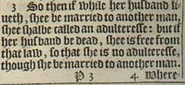 3 So then if while her husband liueth, shee be married to another man, shee shalbe called an adulteresse: but if her husband be dead, shee is free from that law, so that she is no adulteresse, though she be married to another man.