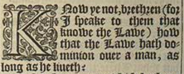 1 Know ye not, brethren (for I speake to them that knowe the Lawe) how that the Lawe hath dominion ouer a man, as long as he liueth?