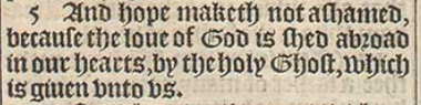 5 And hope maketh not ashamed, because the loue of God is shed abroad in our hearts, by the holy Ghost, which is giuen vnto vs.