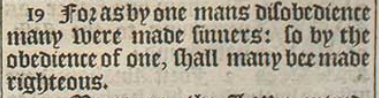 19 For as by one mans disobedience many were made sinners: so by the obedience of one, shall many bee made righteous.