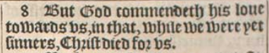 8 But God commendeth his loue towards vs, in that, while we were yet sinners, Christ died for vs.