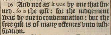 16 And not as it was by one that sinned, so is the gift: for the iudgement was by one to condemnation: but the free gift is of many offences vnto iustification.