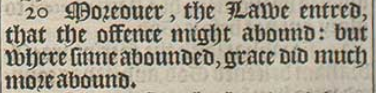 20 Moreouer, the Lawe entred, that the offence might abound: but where sinne abounded, grace did much more abound.