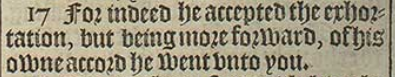 17 For indeed he accepted the exhortation, but being more forward, of his owne accord he went vnto you.
