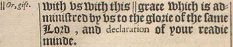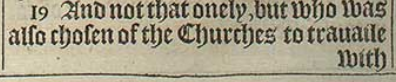 19 And not that onely, but who was also chosen of the Churches to trauaile with vs with this ||grace which is administred by vs to the glorie of the same Lord, and declaration of your readie minde.[|| Or, gift.]