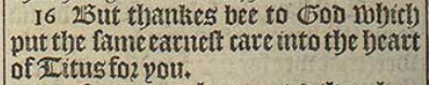 16 But thankes bee to God which put the same earnest care into the heart of Titus for you.