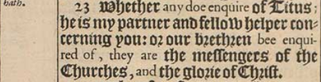 23 Whether any doe enquire of Titus; he is my partner and fellow helper concerning you: or our brethren bee enquired of, they are the messengers of the Churches, and the glorie of Christ.