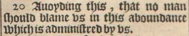 20 Auoyding this, that no man should blame vs in this aboundance which is administred by vs.