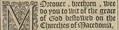 1 Moreouer, brethren, wee do you to wit of the grace of God bestowed on the Churches of Macedonia,