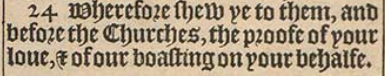 24 Wherefore shew ye to them, and before the Churches, the proofe of your loue, & of our boasting on your behalfe.