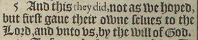 5 And this they did, not as we hoped, but first gaue their owne selues to the Lord, and vnto vs, by the will of God.