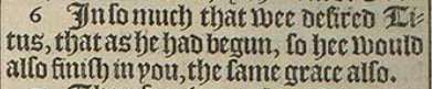 6 In so much that wee desired Titus, that as he had begun, so hee would also finish in you, the same grace also.