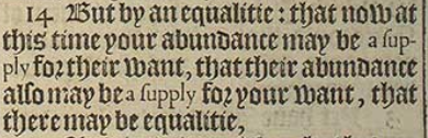 14 But by an equalitie: that now at this time your abundance may be a supply for their want, that their abundance also may be a supply for your want, that there may be equalitie,