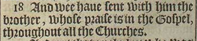 18 And wee haue sent with him the brother, whose praise is in the Gospel, throughout all the Churches.