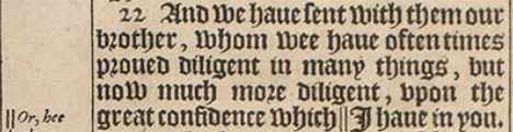 22 And we haue sent with them our brother, whom wee haue often times proued diligent in many things, but now much more diligent, vpon the great confidence which || I haue in you.[||Or, hee hath.]