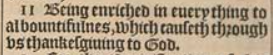 11 Being enriched in euery thing to al bountifulnes, which causeth through vs thankesgiuing to God.