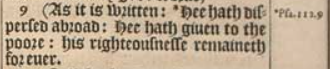 9 (As it is written: *Hee hath dispersed abroad: Hee hath giuen to the poore: his righteousnesse remaineth for euer.[*Psa.112.9]