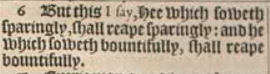 6 But this I say, Hee which soweth sparingly, shall reape sparingly: and he which soweth bountifully, shall reape bountifully.