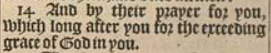 14 And by their prayer for you, which long after you for the exceeding grace of God in you.