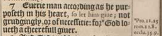 7 Euerie man according as he purposeth in his heart, so let him giue; not grudgingly, or of necessitie: for *God loueth a cheerefull giuer.[*Pro.11.25 rom.12.8. ecclu.35.9.]