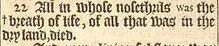 22 All in whose nosethrils was the +breath of life, of all that was in the dry land, died. [ + Hebr. the breath of the spirit of life.]