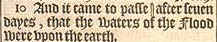 10 And it came to passe || after seuen dayes, that the waters of the Flood were vpon the earth. [ ||Or, on the seuenth day.]