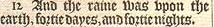 12 And the raine was vpon the earth, fortie dayes, and fortie nights.