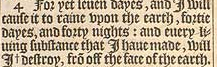 4 For yet seuen dayes, and I will cause it to raine vpon the earth, fortie dayes, and forty nights: and euery liuing substance that I haue made, will I +destroy, frō off the face of the earth.[+Hebr. blot out.]