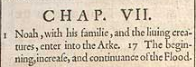 1 Noah, with his familie, and the liuing creatures, enter into the Arke. 17 The beginning, increase, and continuance of the Flood.