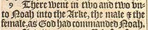 9 There went in two and two vnto Noah into the Arke, the male & the female, as God had commanded Noah.