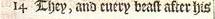 14 They, and euery beast after his kinde, & all the cattell after their kinde: and euery creeping thing that creepeth vpon the earth after his kinde, and euery foule after his kinde, euery birde of euery +sort. [+Heb. wing.]