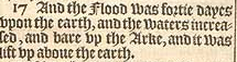 17 And the Flood was fortie dayes vpon the earth, and the waters increased, and bare vp the Arke, and it was lift vp aboue the earth.