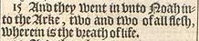 15 And they went in vnto Noah into the Arke, two and two of all flesh, wherein is the breath of life.