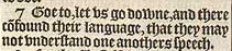 7 Goe to, let vs go downe, and there cōfound their language, that they may not vnderstand one anothers speech.