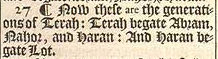 27 ¶ Now these are the generations of Terah: Terah begate Abram, Nahor, and Haran: And Haran begate Lot.